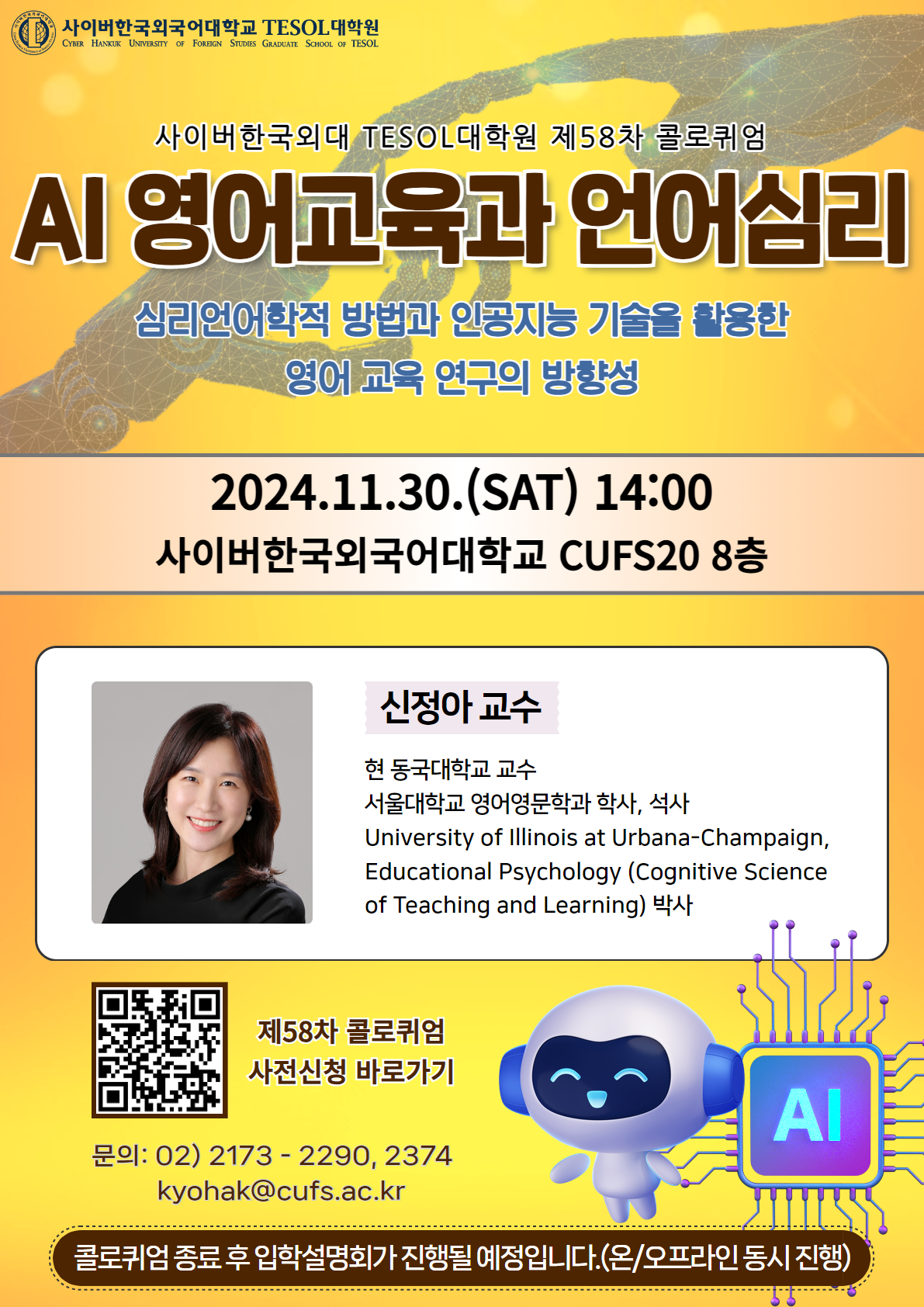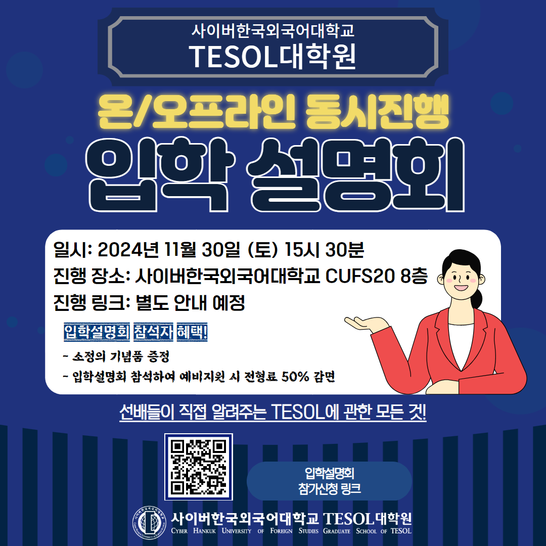 11월 30일(토) 오후2시 - TESOL대학원 제58차 콜로퀴엄 및 2025-1학기 입학설명회 안내