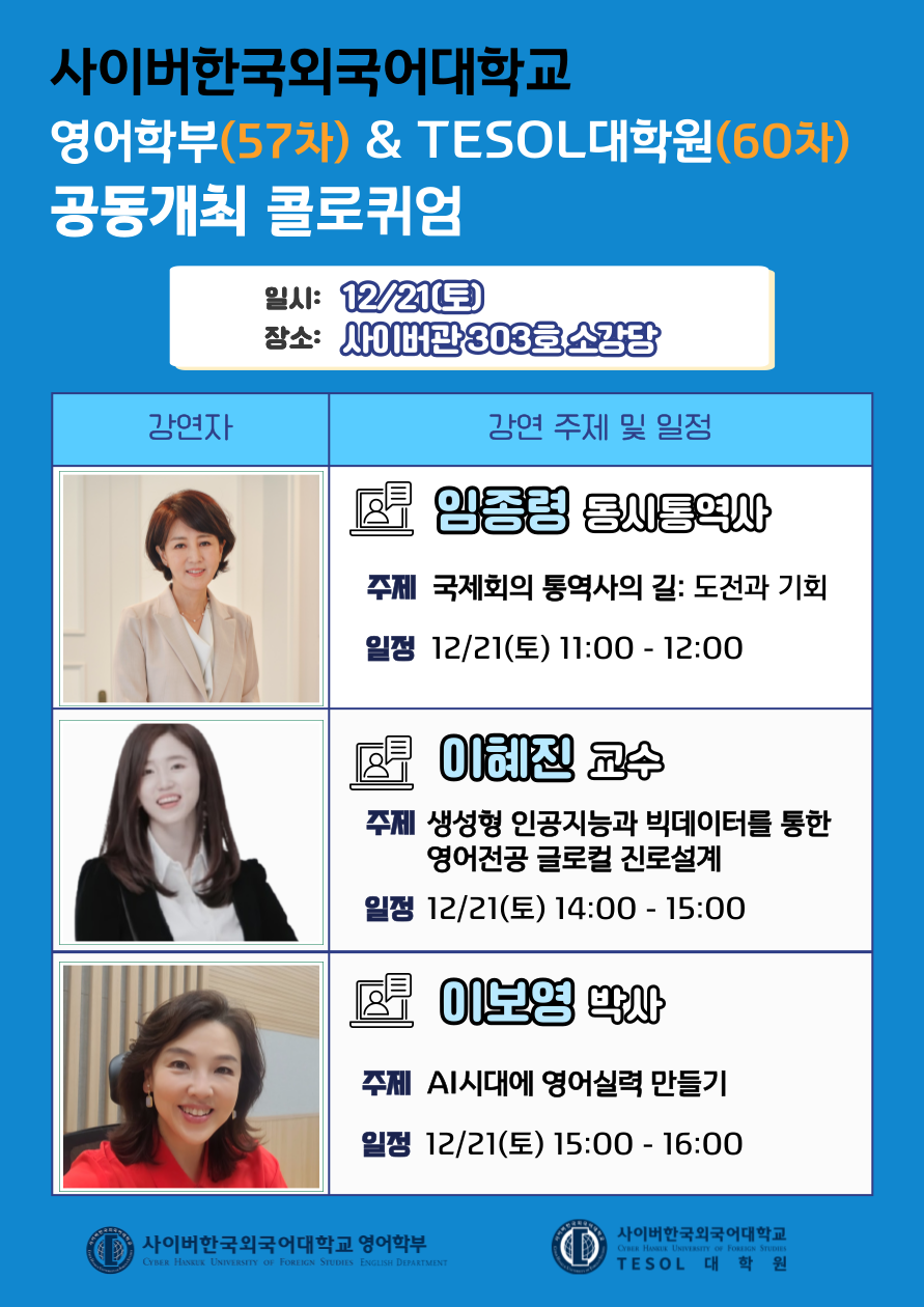 12월 21일(토) 11시 - TESOL대학원(60차) & 영어학부(57차) 콜로퀴엄 안내(오프라인)